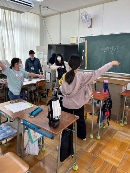 開会式や閉会式で行う、選手宣誓やあいさつ、運動会の歌の指揮、準備体操などを担当します。