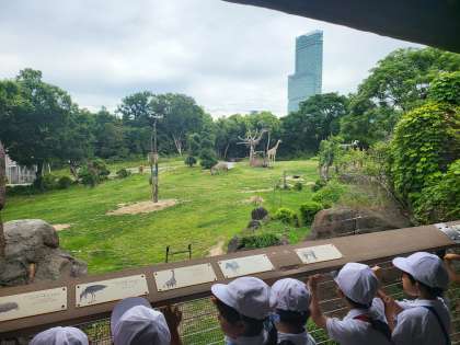 楽しみにしていた、初めての校外学習。譲り合って、仲良く見学しています。