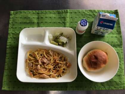 「チキントマトスパゲッティ」は、鶏肉、ウインナーを主材に、たまねぎ、トマト(缶)、にんじん、ピーマンを使用し、バジルで風味をつけたトマト味のスパゲッティです。