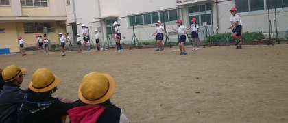 運動委員会の子どもたちが、なわとびの模範演技をしました。