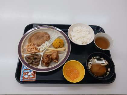 夕食(和風おろしハンバーグ&から揚げ定食)
