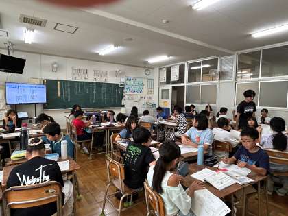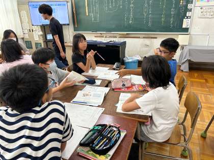作った短歌をお互いに読み合い、さらに工夫できそうなところを話し合いました。友だちの作品について、良さを認め合い、短歌を仕上げることができました。