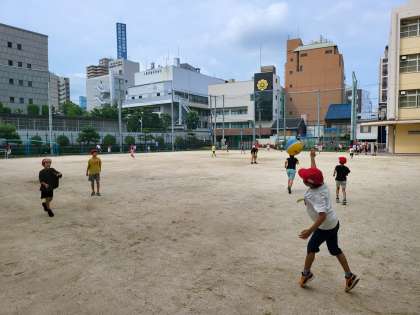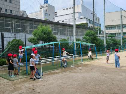 少し暑さが和らぎ、今日は外へ出て遊ぶことができました。久しぶりの外遊び。子どもたちは元気いっぱい、楽しそうに遊んでいました。