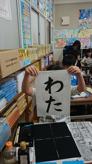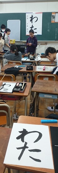 ウ 点画の種類を理解するとともに,毛筆を使用して筆圧などに注意して書くこと。