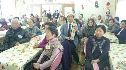桃陽連合の高齢者食事サービスの「一足早いクリスマスパーティー」に、お昼の休み時間を使って参加してきました。