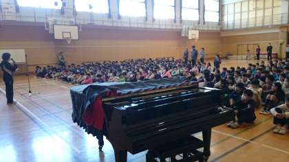 (おしゃべり、手悪さがパッとなくなりました。450名の子どもたちが静けさを作っています。)