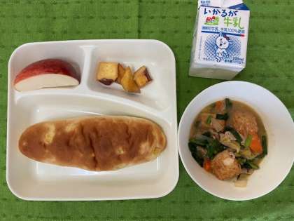 ●中華煮 ●大学いも ●りんご ●おさつパン ●牛乳