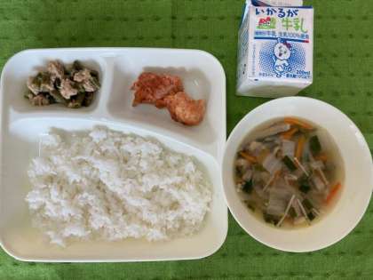 10/8 給食 公開日 2024/10/08 更新日 2024/10/08 今日の給食 ●鶏肉のチリソース焼き ●焼き豚のスープ ●ツナとさんどまめのオイスターソースいため ●ごはん ●牛乳 いいね(0)