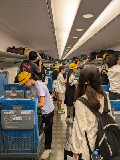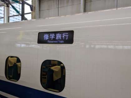 予定通り新幹線に乗車しました。新幹線は修学旅行専用列車です。
