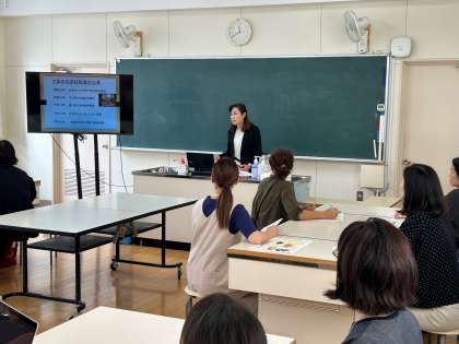 PTA試食会では、区内小学校の栄養教諭の先生に来ていただき、給食の歴史やメニューの工夫など安心安全を目指した大阪市の取り組みについて教えていただきました。またVTRですが、普段の給食の様子について見学しました。
