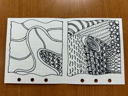 今回は、(前校長)橋本智恵人先生をお招きして「ゼンタングル」講座が開催されました。「ゼンタングル」とは、簡単な線や模様を繰り返し描くことで、美しい作品を作りあげるアートです。当日はたくさんの参加者で賑わいました。参加者の皆さんの作品を一部、紹介します。