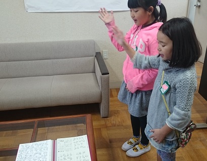 彼女たちは、桃湯子ども会(土曜日に活動)のコーラスのメンバーです。