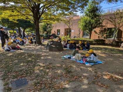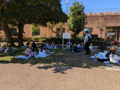 ハルカスの見学も終わり、天王寺公園へ移動してお弁当タイムです。木陰は涼しく、友だちと仲良くお弁当を食べました。