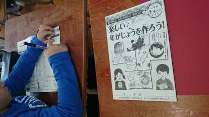 その冊子を使って年賀状を書いてみよう・・・という授業をしました。