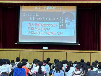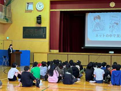 警察の方による、非行防止教室がありました。6年生になると、携帯電話やSNSを使う機会が増えてきます。その際、犯罪に巻き込まれないよう、怖い目にあわないようにするためには、どのようなことに気をつけたらよいのか、話していただきました。
