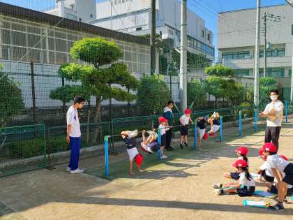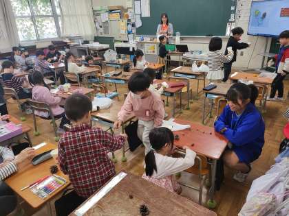 夕陽丘中学校2年生の職場体験がありました。授業中は担任のサポートをしたり、休み時間は子どもたちと思いっきり遊んだりしてくれました。子どもたちは優しいお兄さん、お姉さんが来てくれたと大喜びでした。