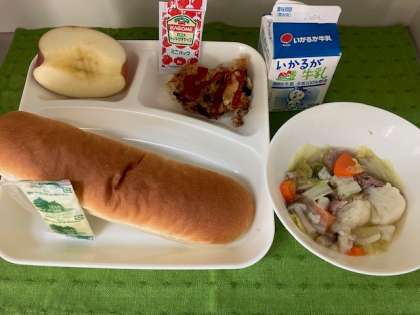「とうふローフ」は、ツナ・とうふ・細かくカットした大豆・たまねぎ・でんぷんを混ぜ合わせ、砂糖・塩・こいくちしょうゆで味付けし焼き物機で焼いています。