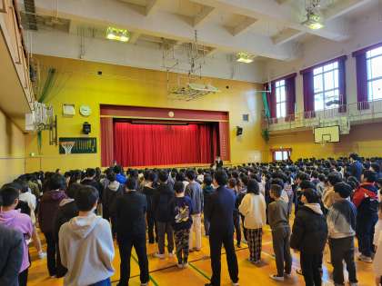 始業式では、校長先生から「おはよう」「さようなら」の日々の挨拶、感謝の気持ちを伝える「ありがとう」や友だちを励ます言葉などみんなの心が温まる言葉をたくさん使いましょう、そして元気にいることに感謝し、命を大切にしましょう、とお話がありました。