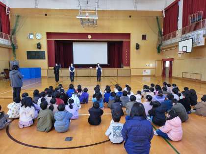 警察署の方にお越しいただき、2時間目1年生、3時間目4年生を対象に交通安全教室を行っていただきました。テーマは、「自転車の正しい乗り方について」でした。