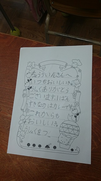 全国学校給食週間にあわせて、給食調理員さんにお礼の手紙を書いています。