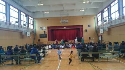 1時間目の宮川彬良さんの音楽授業に続き、大阪教育大学の音楽専攻の卒業生で2000年に結成されたアカペラグループ「SANTA☆MARIA」のコンサートをみんなで聴きました。