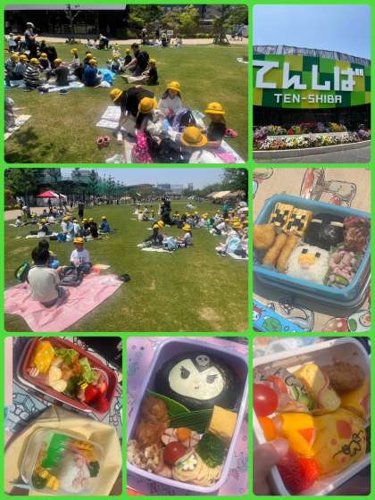 てんしばに移動し、ランチタイムに入りました。子ども達は嬉しそうにお弁当を食べています。保護者の皆様、朝早くからお弁当作りありがとうございました。