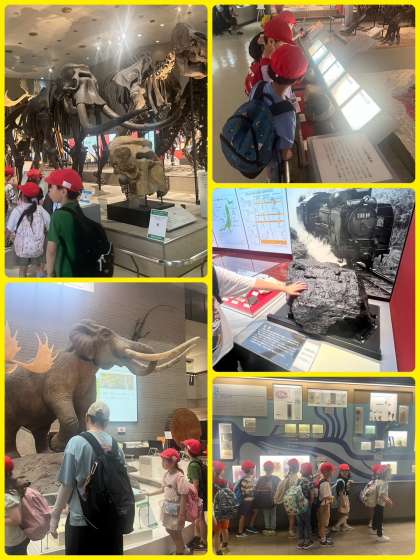 自然史博物館へ移動して、館内を見学しました。大阪の昔の様子や、恐竜やナウマンゾウの化石などを見て、子ども達はびっくりしていました。これから学校の方へ移動します。