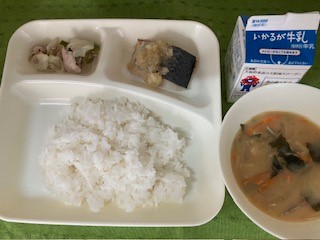●さごしのおろしじょうゆかけ ●みそ汁 ●野菜いため ●ごはん ●牛乳