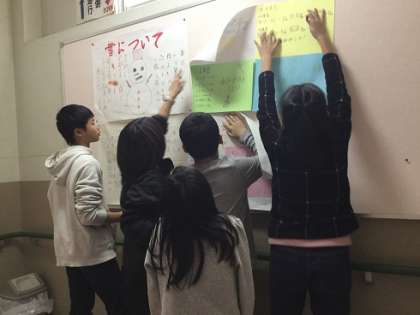 新聞委員会=作ったばかりの新聞を階段の踊り場に掲示