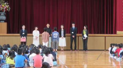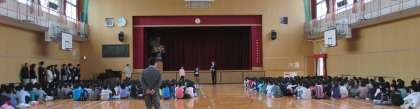 3名の先生と給食調理員さん、管理作業員さん、そして教頭先生の6名の着任式をしました。