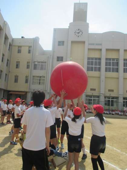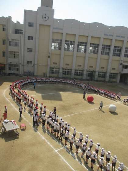 全校競技の大玉ころがしを初めて全児童でやってみました。