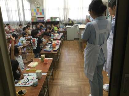 大阪府歯科医師会付属歯科衛生士専門学校の3年生の学生さん(32名)から、はみがき指導を受けました。