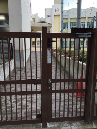 ・ 学校にお越しの時は、インターホンで要件をお伝えの上、上部のフックを外してから入校してください。お帰りの際は、必ずフックをかけ閉めてください。