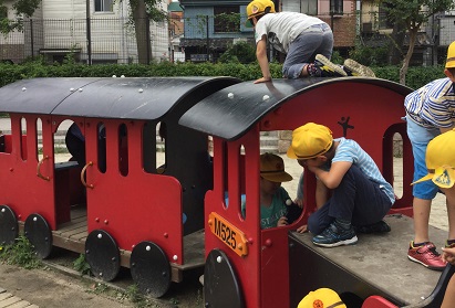 安全気を付けて、公園まで歩いていき、公園で遊ぶ際のルールやマナーを学習しました。