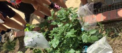 「葉のあるところ」と「茎だけのところ」、それぞれに透明なビニール袋をかぶせます。