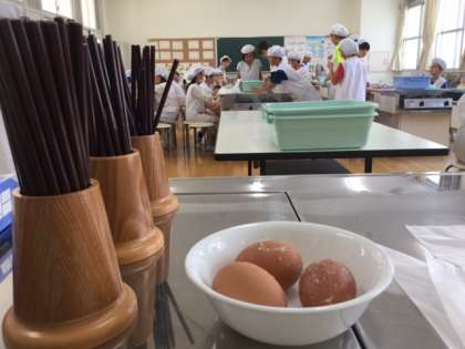 まずは、ゆで卵。お水に卵を入れてからゆでていきます。