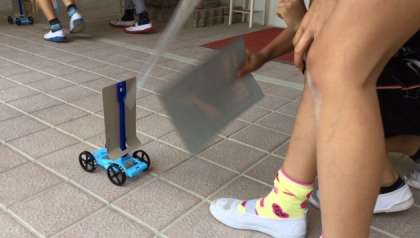 風やゴムで物が動く様子を調べ,