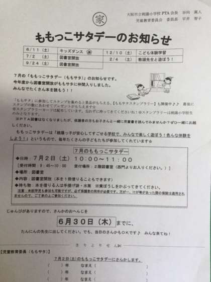 【PTA】ももっこサタデーのお知らせ