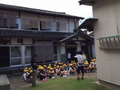 竹とんぼの後、宿舎に戻り避難訓練をしました。