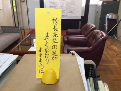 「校長先生に直接きいてごらん。」教頭先生が子どもに話しかけている声が聞こえました。呼ばれて職員室の前に行くと「校長先生、まだ足が痛いですか?」「治るように、お祈りの短冊持ってきます」