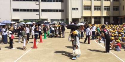 桃陽小学校、始まって以来の引き渡し訓練です。