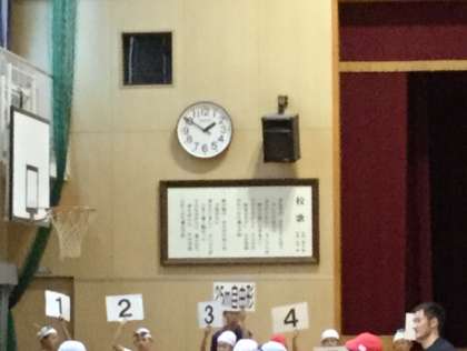 体育館で出場する競技にグループ分けして、プールへ上がります。