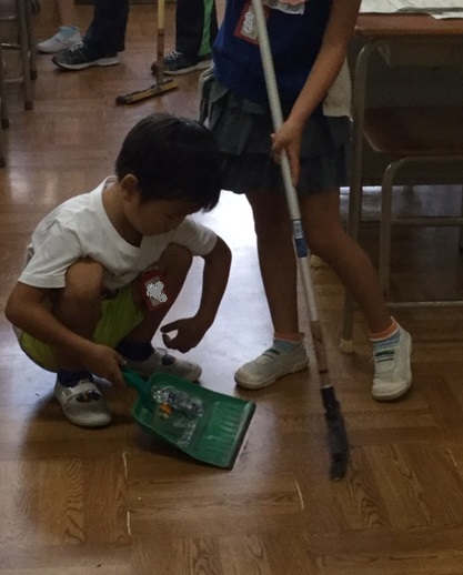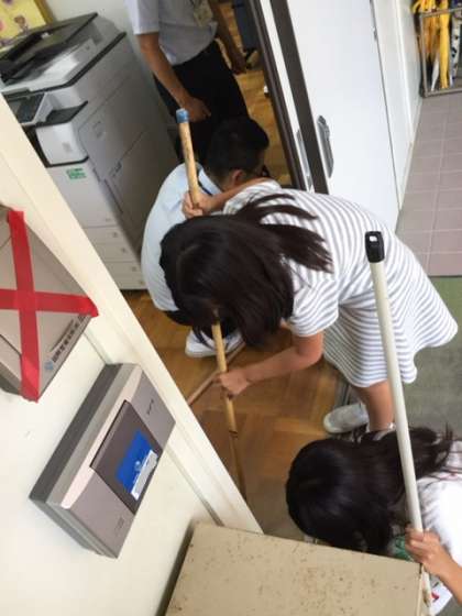 教頭先生が職員室を掃除している、いつの間にか手伝ってくれました。
