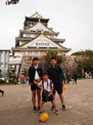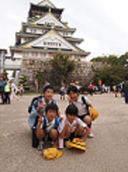 大きな6年生がかわいい1年生と一緒に、クイズをしながら大阪城を一巡り。