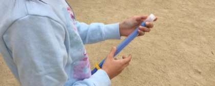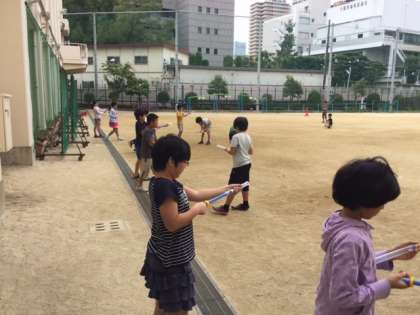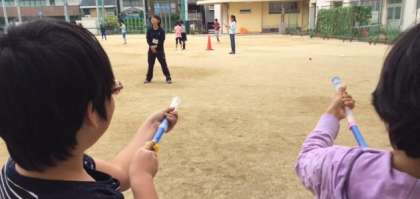 校庭から「ポン! ポン!」という音が聞こえてきました。