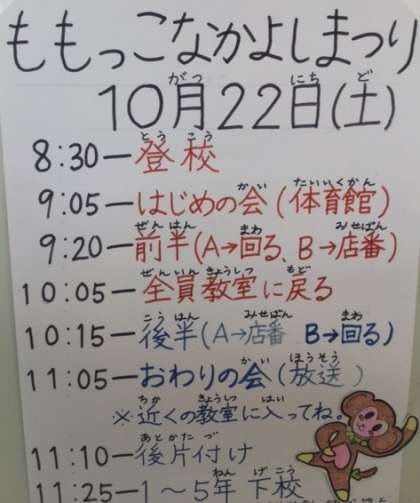 手づくりのスケジュール表がいたるところに貼ってありました。
