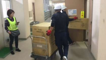 桃陽小学校には、地域の避難場所として、災害救助用日常品の備蓄があります。