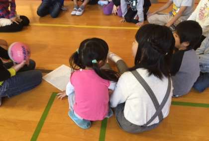 6年生が1年生といっしょに楽しそうです。