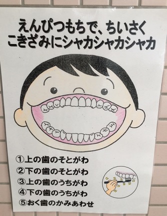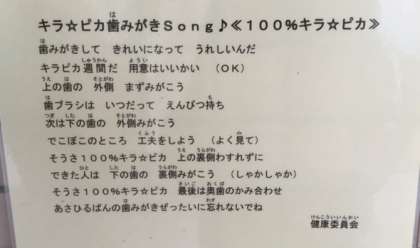 毎年、はみがきをしよう!と言う内容の替え歌(写真上)が、