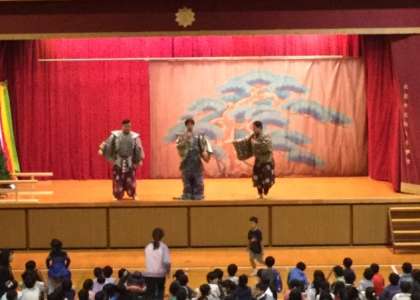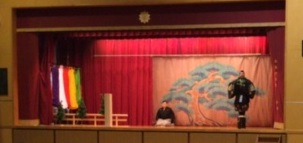 この木の箱の上で、演者は猿や鳶のものまねをする「山伏」を演じます。